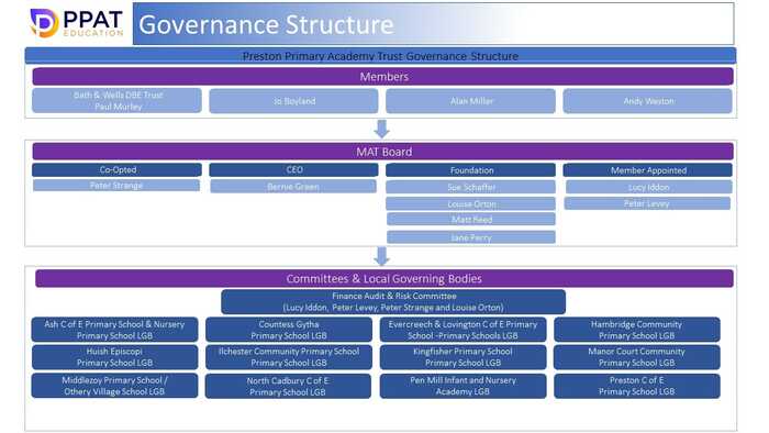 Our Trust has 8 directors, 4 are foundation directors appointed by the Bath and Wells Diocese Board of Education. The Chief Executive Officer is automatically a director . Foundation directors promote the Christian distinctiveness and values of our Church schools but responsibility is shared by all directors., All Directors focus on ensuring that the Trust delivers an excellent education to the pupils in our schools while maintianing effective financial management